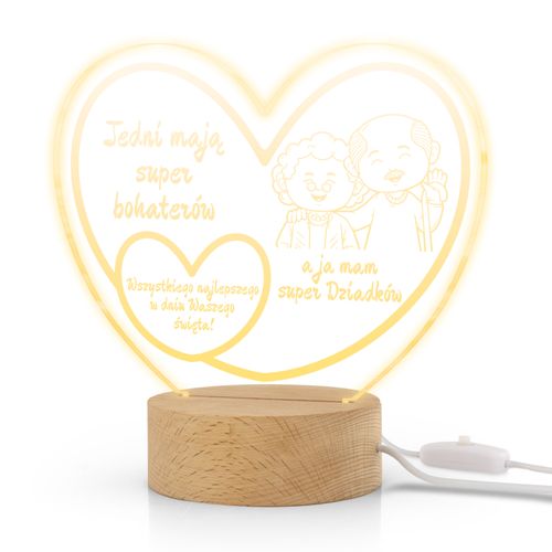 Lampka LED to upominek, który wywoła zachwyt w każdej obdarowanej osobie. Przeźroczyste szkło akrylowe pięknie mieni się blaskiem, a ciepła barwa lampki ledowej oddaje cały urok tego prezentu.