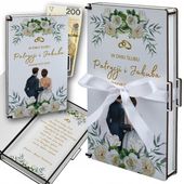 ✔️ Pojemność na każdy format banknotu oraz dołączona wstążka, ułatwiająca eleganckie i praktyczne wręczenie prezentu ślubnego.