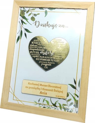 Ten ręcznie wykonany obraz 3D to niepowtarzalny sposób na upamiętnienie ważnych chwil w życiu dziecka. Drewniana rama i ozdobne serce w złotym lustrze dodają eleganckiego i luksusowego charakteru, sprawiając, że prezent będzie wyróżniał się na tle innych.