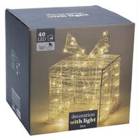 Świecący prezent świąteczny z lampkami LED. Prezent prezentuje się bardzo efektownie i będzie wyjątkową ozdobą w okresie świąt Bożego Narodzenia. Nada oryginalnego charakteru każdemu wnętrzu. Wyposażony jest w oświetlenie, więc zapalony stworzy magiczny klimat. Można ustawić go w dowolnym pomieszczeniu. Wyprodukowano zgodnie z europejskimi standardami.