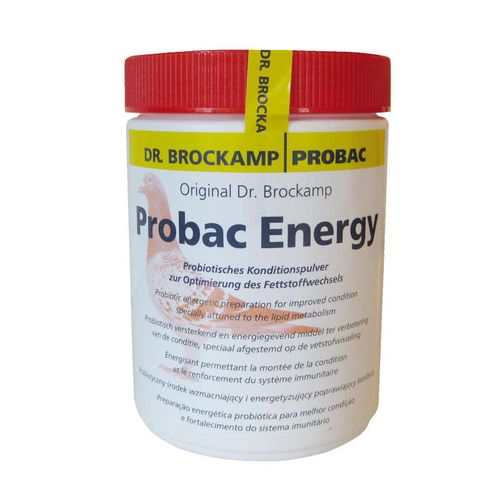 Probac Energy zawiera wszystkie podstawowe substancje odżywcze takiej jak witaminy, aminokwasy, minerały i elementy śladowe, które są specjalnie przystosowane do przemiany materii gołębia.