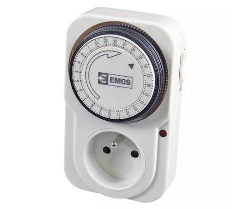 Jest to gniazdko z przełączaniem mechanicznym albo inaczej timer mechaniczny służący do ustawienia czasów włączenia i wyłączenia dowolnych odbiorników elektrycznych. Działa niezawodnie również podczas Państwa nieobecności w domu. Jeżeli wymagamy włączenia lub wyłączenia urządzenia w określonym czasie, wystarczy ustawić programator oraz podłączyć urządzenie gospodarstwa domowego do wbudowanego gniazdka.