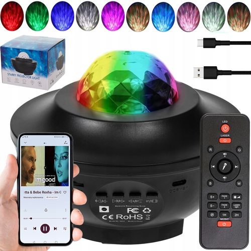 Muzyczny projektor gwiaździstej nocy - projektor może wyświetlać realistyczną gwiaździstą noc na ścianach i suficie, tworząc idealne środowisko do spania dla dzieci, pokazując niezapomnianą noc dla rodziny lub przyjaciół.