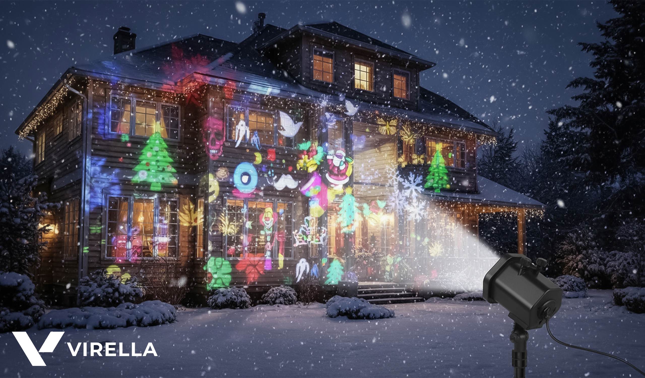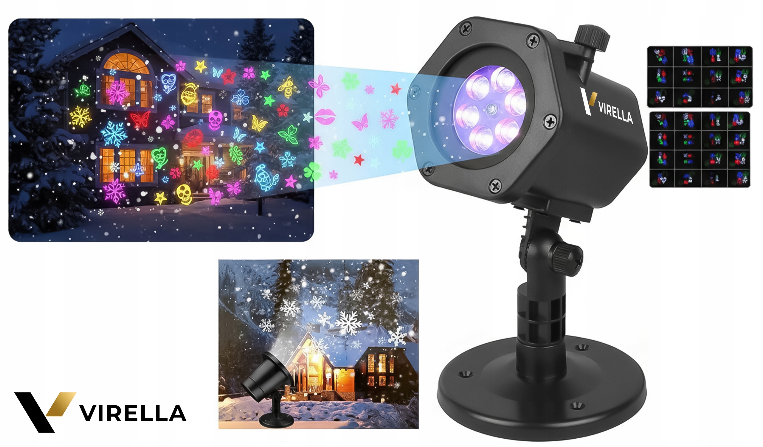 Zamień elewację, ogród lub salon w zimową bajkę bez kabli lampek i bez skomplikowanego sterowania. Projektor VIRELLA oferuje aż 48 wzorów (nie 12–24 jak typowe modele), długi kabel 5 m i pełną odporność pogodową IP65. Wybierasz lepszą jakość, większe możliwości i niższe zużycie prądu — efekt WOW gwarantowany.