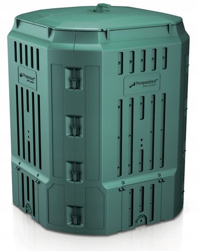 Cechuje się wyjątkową efektywnością w tworzeniu kompostu. Kompostownik posiada dwuczęściową zamykaną pokrywę z izolacją dwuścienną, co zapewnia doskonałe warunki termiczne do przeprowadzania procesu kompostowania. Solidność, trwałość i odporność na warunki atmosferyczne sprawiają, że jest to produkt, który służy przez długie lata niezależnie od warunków zewnętrznych.