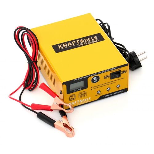 Prostownik mikroprocesorowy KD1917 Polskiej firmy Kraft&Dele to niezawodne urządzenie prostownikowe do ładowania wszystkich typów akumulatorów kwasowo-ołowiowych (WET/MF/CA/EFB/GEL/AGM). Czas ładowania akumulatora zależy od jego pojemności znamionowej i stopnia rozładowania.