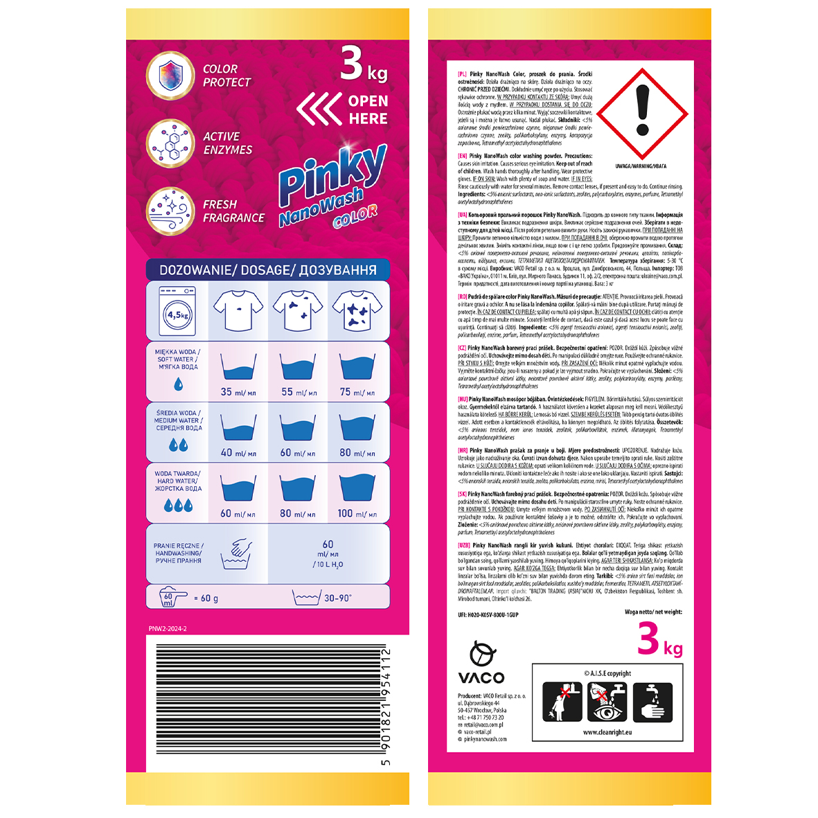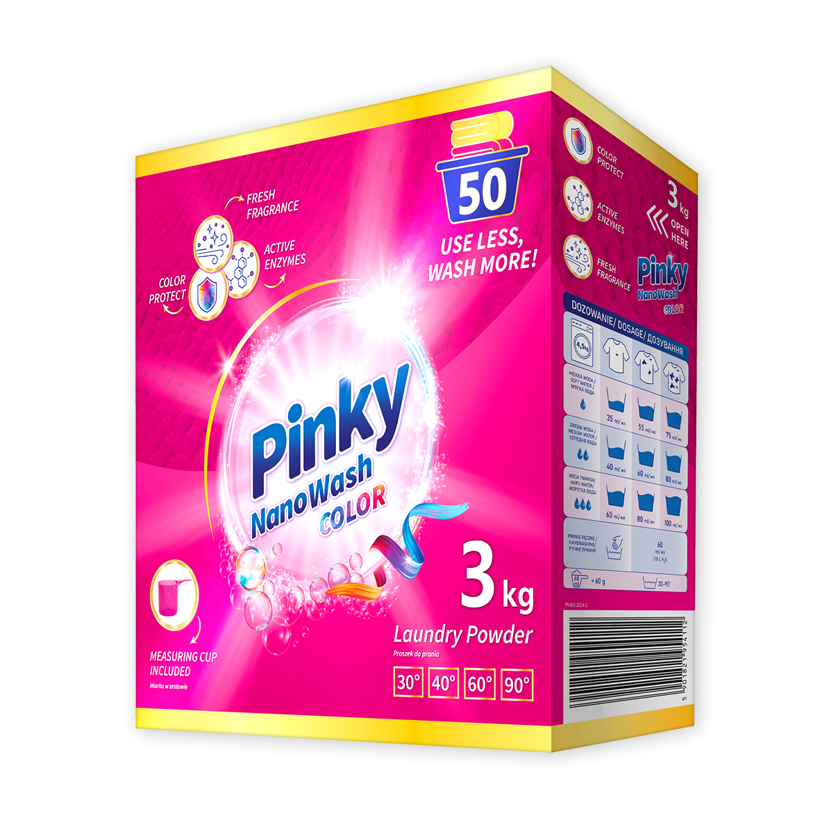 Pinky NanoWash Color to proszek do prania, który zapewnia wyjątkową wydajność. Opakowanie o pojemności 3kg wystarcza na aż 50 prań, co czyni go ekonomicznym i praktycznym rozwiązaniem dla każdej rodziny. Dzięki temu rozwiązaniu zaoszczędzisz czas i pieniądze, nie musząc często uzupełniać zapasów. Dodatkowo, jego efektywność sprawia, że jest to wybór przyjazny dla środowiska.