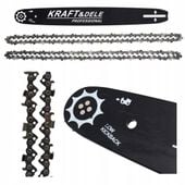 Zestaw składający się z prowadnicy oraz dwóch łańcuchów. Wykonany z najwyższej jakości materiałów. Prowadnica przystosowana jest do pilarek wielu marek, między innymi Stihl, Husqvarna, Alpina, Kraft&Dele oraz wielu innych pracujących z łańcuchami 3/8 i szerokością ogniwa prowadzącego 1,3mm.