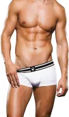 Prowler Bokserki męskie TRUNK XL to nowoczesna propozycja dla mężczyzn ceniących wygodę oraz stylowy wygląd na co dzień. Model wyrożnia się eleganckim połączeniem kolorow – kontrastowy pas w odcieniach bieli i czerni został ozdobiony charakterystycznym logo marki Prowler, a całość dopełnia gładki, biały tył, nadając bokserkom wyjątkowy charakter.