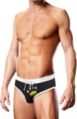 Prowler Figi kąpielowe Paw S to połączenie stylu, komfortu i wyjątkowego wzornictwa. Model wyrożnia się charakterystycznym logo Prowler w formie kolorowego odcisku łapy, inspirowanym flagą LGBTQ Progress Pride, co nadaje mu unikalny i nowoczesny wygląd. Czarne, eleganckie figi kąpielowe zostały uzupełnione kontrastującym białym paskiem oraz wykończeniem otworow na nogi, podkreślającym sportowy charakter produktu.