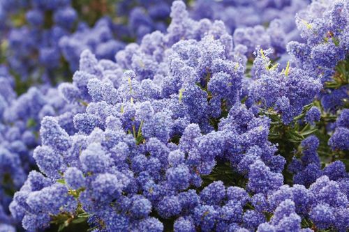 Kwiaty rozwijają się na początku czerwca, zachowują sie przez miesiąc, często roślina powtarza kwitnienie jesienią. Są drobne, ale bardzo liczne, mają barwę fioletową, lub żywo niebieską. Kwiaty zebrane są w okazałe, lekko przewisające wiechy.Jest to krzew zimozielony.Ze względu na piękne kłęby niebieskich kwiatów(najpierw jasno niebieski z wiekiem ciemnieje) krzew ten jest bardzo poszukiwany do każdego ogrodu. | |