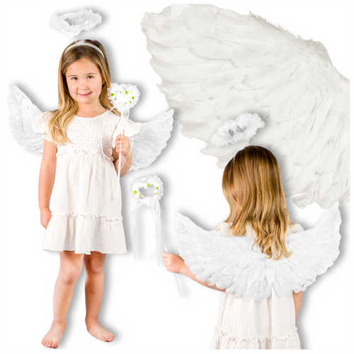 Dopracowane detale: Zestaw zawiera wszystkie niezbędne elementy, aby Twoje dziecko poczuło się jak prawdziwy Anioł - od pięknych skrzydeł po uroczą aureolę i różdżkę
