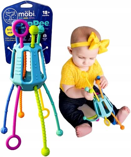 Ten wyjątkowy przeciąganiec Zippee od MOBI to nie zwykła zabawka - to prawdziwy instrument rozwoju sensorycznego. Dzięki sześciu silikonowym sznureczkom o zróżnicowanych fakturach i kształtach, stymuluje jednocześnie wzrok, dotyk i słuch dziecka. Jasne, piękne kolory przykuwają uwagę malucha, podczas gdy różnorodne tekstury rozwijają wrażliwość dotykową i motorykę precyzyjną.