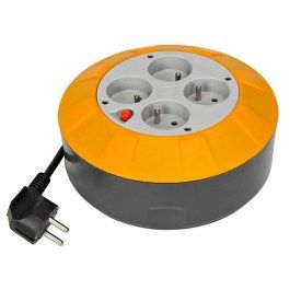 4 uziemione gniazda z przesłoną torów prądowych. Bezpiecznik termiczny i przycisk reset. Rodzaj kabla: H05VV-F 3G1.0 mm². Długość kabla: 5 m. Prąd: 16 A. Napięcie: 250 V. Wymiary: Wys:75xØ185 mm. Masa: 830 g.