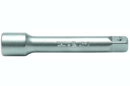 Przedłużka współpracuje z nasadkami oraz grzechotkami YATO 1/2". Służy do przeniesienia napędu z grzechotki na nasadkę a jednocześnie umożliwia działanie w trudno dostępnych i głębokich miejscach. Produkt wykonany z wytrzymałej na skręcanie i pęknięcia stali chromowo wanadowej CrV 50BV30, posiada kulkę blokującą i ustalającą nasadkę podczas pracy. Pokrętło z jednej strony ma trzpień o przekroju kwadratowym, z drugiej natomiast gniazdo o przekroju kwadratowym. Gniazdo wyposażone jest w system AS-DRIVE, czyli specjalnie zaokrąglone kąty , pozwalające na zwiększenie momentu obrotowego, bez pęknięcia ścianki gniazda.
