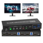 HDMI KVM Switch to nowoczesne rozwiązanie dla profesjonalistów oraz entuzjastów technologii, które umożliwia efektywne zarządzanie dwoma komputerami za pomocą jednego zestawu urządzeń peryferyjnych. Dzięki podwójnemu przełącznikowi monitorów KVM, możesz z łatwością kontrolować dwa monitory, klawiaturę, mysz oraz urządzenia USB, co znacząco podnosi komfort pracy w wymagających środowiskach. Urządzenie jest idealne dla programistów, grafików oraz twórców treści, którzy potrzebują wydajnych narzędzi do pracy.