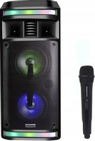 Wysokonapięciowy sprzęt wysokiego napięcia z dwoma 6,5-calowymi głośnikami i głośnikiem wysokotonowym. Funkcja Bluetooth, różne wejścia USB i SD, tryb karaoke i oświetlenie LED, dzięki czemu możesz zabrać imprezę gdziekolwiek chcesz. Wbudowany akumulator pozwala odtwarzać muzykę bez kabli.