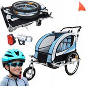 ✅ Cechy dodatkowe: amortyzacja, chorągiewka bezpieczeństwa, folia przeciwdeszczowa, funkcja jogger, hamulec, moskitiera, odblaski, oświetlenie, pompowane koła, przestrzeń bagażowa, składana konstrukcja przyczepki, zaczep do roweru