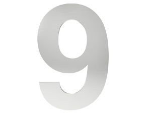 Oznaczenie budynków - cyfra 9, wykonane ze stali nierdzewnej. Produkt ma wysokość 15,5 cm. Produkt posiada tuleje dystansowe o długości 15 mm, dzięki którym cyfra oddalona jest od elewacji, co zmiejsza ryzyko zabrudzeń i uszkodzeń budynku.
