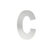 Oznaczenie budynków - litera C, wykonane ze stali nierdzewnej. Produkt ma wysokość 11,5 cm. Produkt posiada tuleje dystansowe o długości 15 mm, dzięki którym cyfra oddalona jest od elewacji, co zmiejsza ryzyko zabrudzeń i uszkodzeń budynku. Rozmiar produktu pozwala na dopasowanie go do pozostałych oznaczeń dostępnych w naszej ofercie.