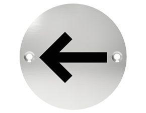 Oznaczenie na drzwi - strzałka, wykonane ze stali nierdzewnej. Produkt ma średnicę 76mm.