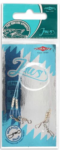 Najwyższej jakości przypony wykonane z fluorocarbonu. Doskonale sprawdzą się wszędzie tam gdzie podczas sandaczowania czy łowienia okoni możemy spodziewać się przyłowu szczupaka. Solidna konstrukcja została wyposażona w krętlik rolkowy i doskonałą agrafkę „Mikado” snap. Przypony dostępne w szerokiej gamie długości i wytrzymałości.