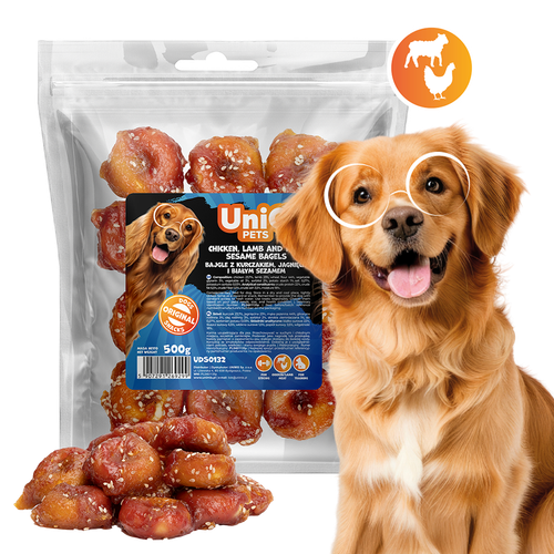 Dlaczego warto wybrać nasze UNIQ PETS PRZYSMAKI DLA PSA CHEWY 500g bajgle z kurczakiem, jagnięciną i białym sezamem 4cm?