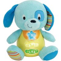 Piesek Szczekuś jest jednym z przytulaczków. Na swoim brzuszku posiada trzy kolorowe przyciski funkcyjne, które uruchamiają różne melodie oraz uczą dzieci podstawowych cyfr i liter. Dodatkowo posiada mięciutką główkę i stópki.