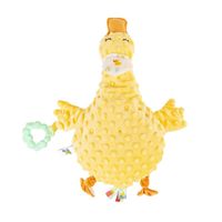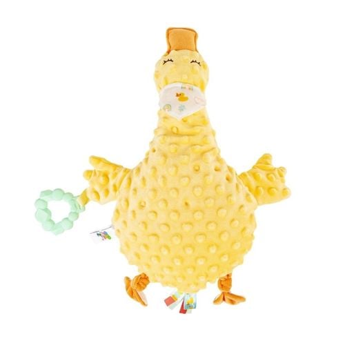Żółciutka kaczuszka to wymarzona przytulanka każdego bobasa! Jest milusia i urocza, a jej skrzydełko zdobi gryzaczek, który przyniesie ulgę obolałym dziąsłom ząbkującego dziecka. Zabawka posiada szeleszczące skrzydełko, chusteczkę na szyi i metki doszyte w miejscu ogonka. Kaczuszka uszyta została z materiałów o zróżnicowanych fakturach, dzięki czemu zabawa z nią wspomaga rozwój zdolności poznawczych malucha.