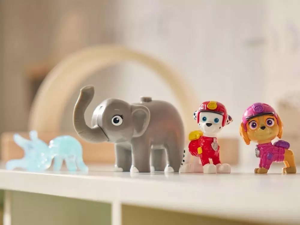 Zestaw figurek Pieski Ratunkowe w dżungli inspiruje dzieci do tworzenia własnych historii o odważnych pieskach. Marshall i Skye wyruszają na wyprawę do dżungli, gdzie spotkają słonika! Jakie przygody czekają na nich? Przymocuj wodny pocisk do słonikowej trąby, naciśnij przycisk na plecach zwierzątka i wystrzelaj! Wrrrr! Wykorzystaj swoją wyobraźnię, aby naśladować ulubione odcinki serialu „Pieski Patrol” lub nakręcić zupełnie nowe misje! Zabawki Pieski Ratunkowe dla małych dzieci i przedszkolaków są doskonałym prezentem, który rozwija wyobraźnię i radosnym sposobem trenuje zdolności motoryczne.