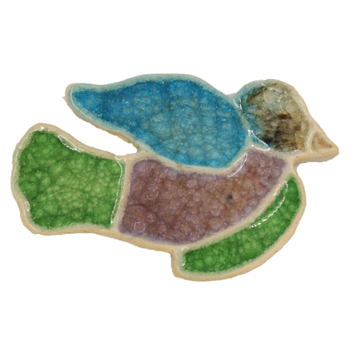 Ręcznie wykonany ptaszek wielobarwny. Ptaszek jest świetną ozdobą, ale również idealnym prezentem. Ptaszki są jednostronnie szkliwione i przeznaczone do powieszenia. Idealnie sprawdzą się jako prezent okolicznościowy lub do ozdoby domu.