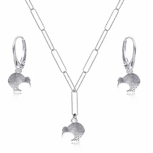 Ten wyjątkowy komplet biżuterii Kiwi, wykonany w całości ze srebra próby 925, odzwierciedla elegancję i klasę. Jego olśniewający naszyjnik z zawieszką i kolczykami na biglach angielskich tworzy kompozycję niepowtarzalnej gratki dla miłośników biżuterii. Szczegółowo opracowane detale sprawiają, że ten komplet jest prawdziwą ucztą dla oka.