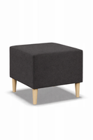 Pufa została obita przyjemną w dotyku tkaniną w modnym, głębokim czarnym kolorze, który nadaje wnętrzu elegancji i charakteru. Stabilna konstrukcja oraz solidne drewniane nóżki w jasnym kolorze zapewniają trwałość oraz komfort użytkowania.