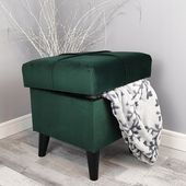 Ta stylowa pufka w nowoczesnym designie na solidnych bukowych nóżkach wyróżnia się nie tylko eleganckim wyglądem, ale także praktycznymi funkcjami. Wyposażona w pojemny schowek o pojemności 15 litrów z białego laminatu, który z łatwością pomieści poskładany koc, zapewnia porządek i wygodę w codziennym użytkowaniu, idealnie wpisując się w każdy nowoczesny wystrój.