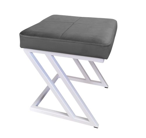 Stylowa pufa o ciekawym designie w kształcie litery ''Z'' świetnie sprawdzi się we wnętrzach w stylu industrialnym, nowoczesnym oraz skandynawskim. Mebel nada elegancji i charakteru także klasycznemu wnętrzu. Wygodne siedzisko wykonane zostało z wysokiej jakości pianki oraz tkaniny typu velvet. Wytrzymała tkanina w szlachetnym połysku wnosi do każdego pomieszczenia odrobinę luksusu. Stelaż wykonany z profili malowany proszkowo w kolorze białym.