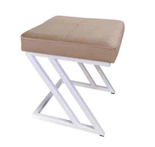 Stylowa pufa o ciekawym designie w kształcie litery ''Z'' świetnie sprawdzi się we wnętrzach w stylu industrialnym, nowoczesnym oraz skandynawskim. Mebel nada elegancji i charakteru także klasycznemu wnętrzu. Wygodne siedzisko wykonane zostało z wysokiej jakości pianki oraz tkaniny typu velvet. Wytrzymała tkanina w szlachetnym połysku wnosi do każdego pomieszczenia odrobinę luksusu. Stelaż wykonany z profili malowany proszkowo w kolorze białym.