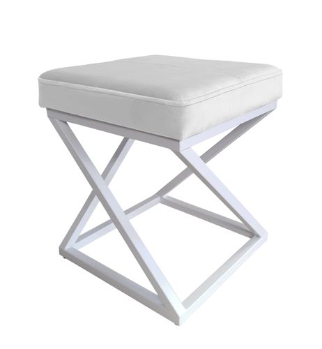 Stylowa pufa świetnie o ciekawym designie w kształcie litery ''Z'' świetnie sprawdzi się we wnętrzach w stylu industrialnym, nowoczesnym oraz skandynawskim. Mebel nada elegancji i charakteru także klasycznemu wnętrzu. Wygodne siedzisko wykonane zostało z wysokiej jakości pianki oraz tkaniny typu velvet. Wytrzymała tkanina w szlachetnym połysku wnosi do każdego pomieszczenia odrobinę luksusu. Stelaż wykonany z profili malowany proszkowo w kolorze białym.