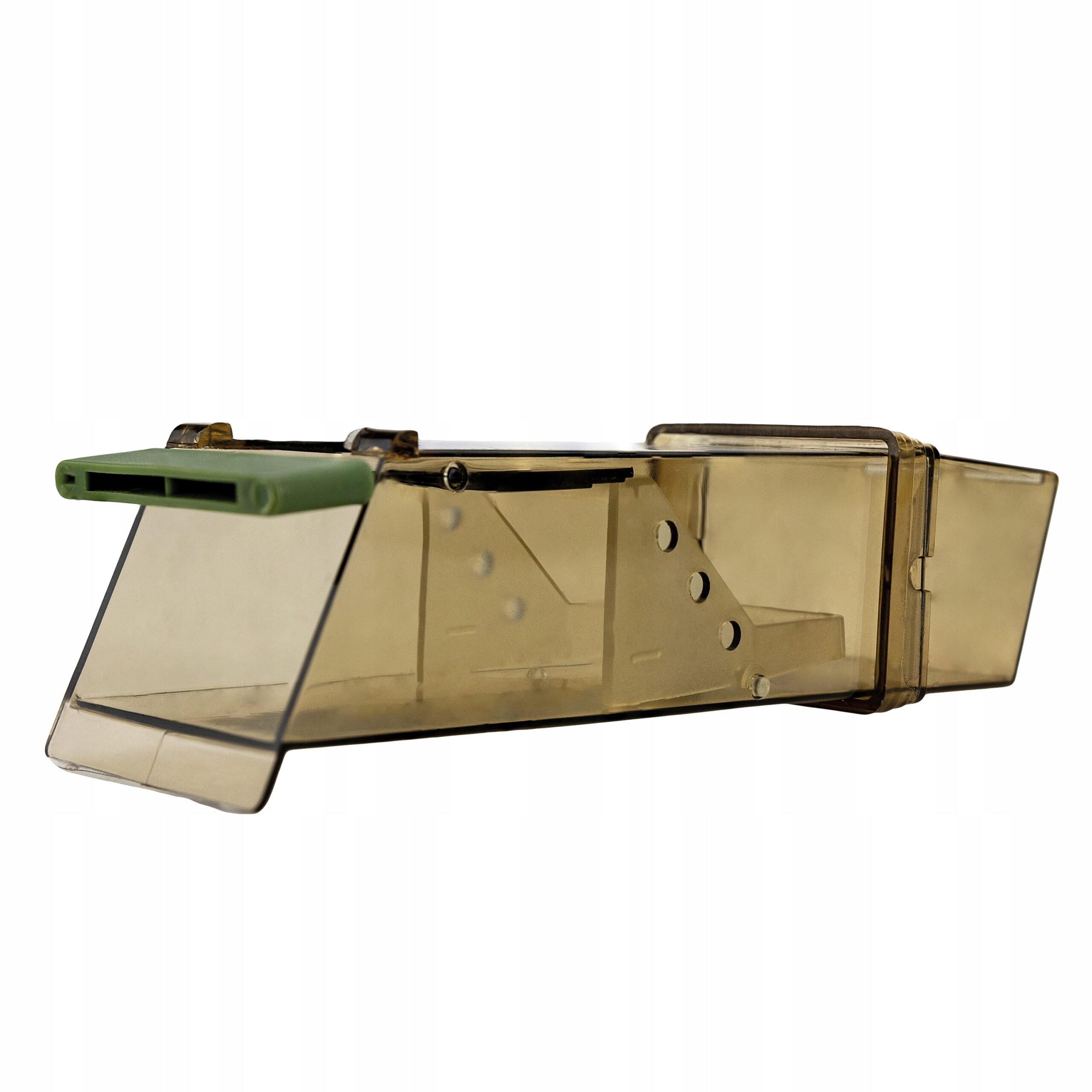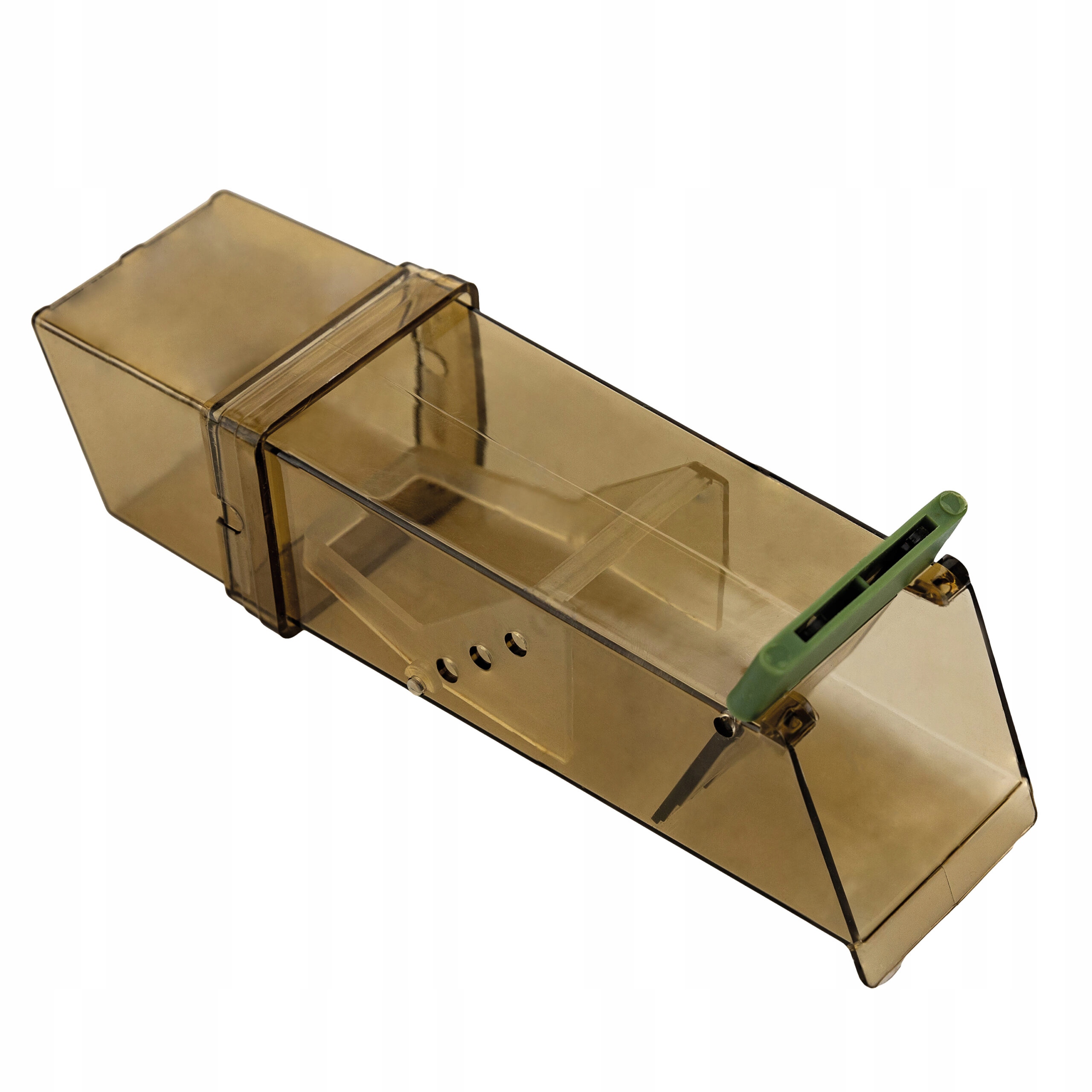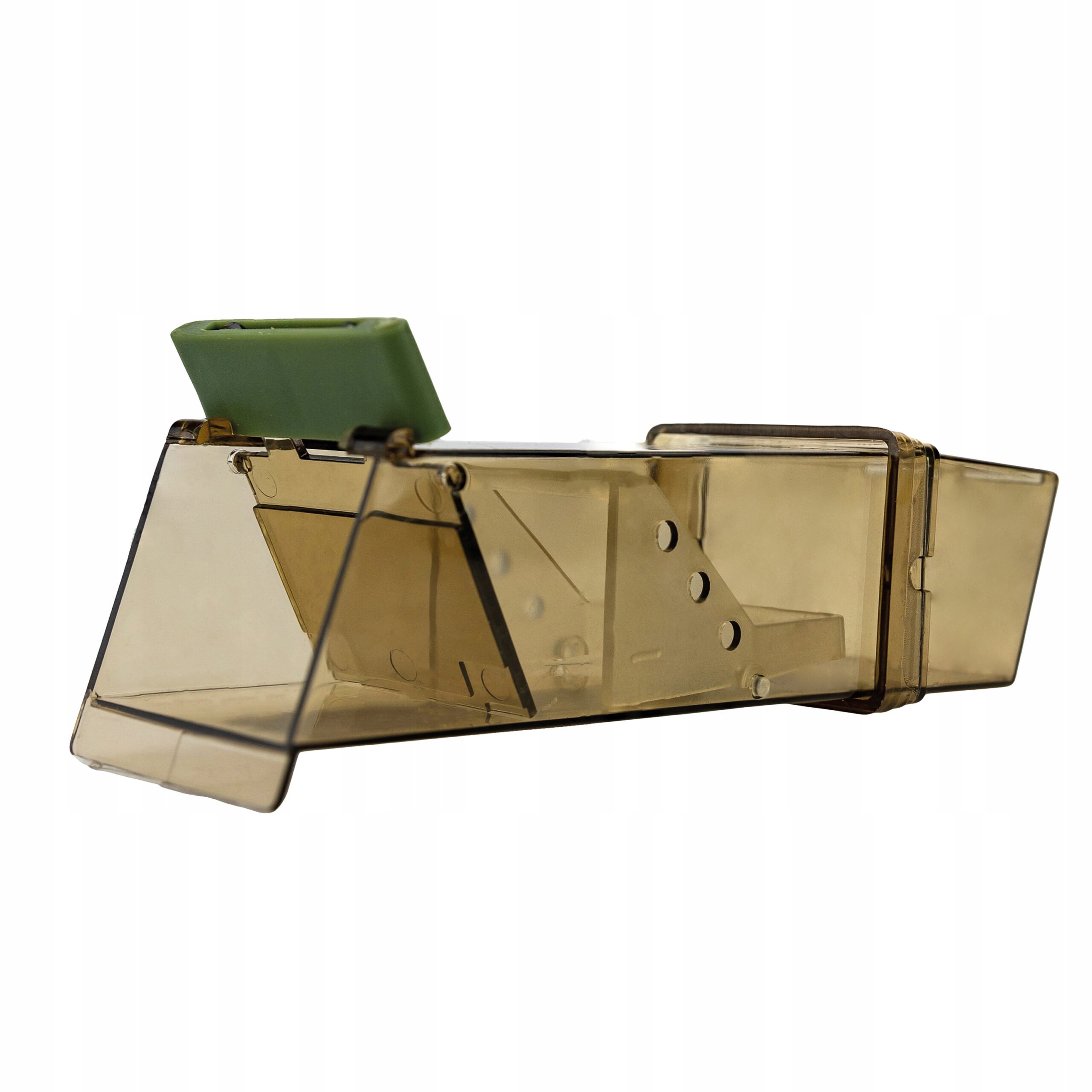 Pułapka posiada specjalny mechanizm, który wpuszcza mysz do środka i nie wypuszcza jej na zewnątrz.
