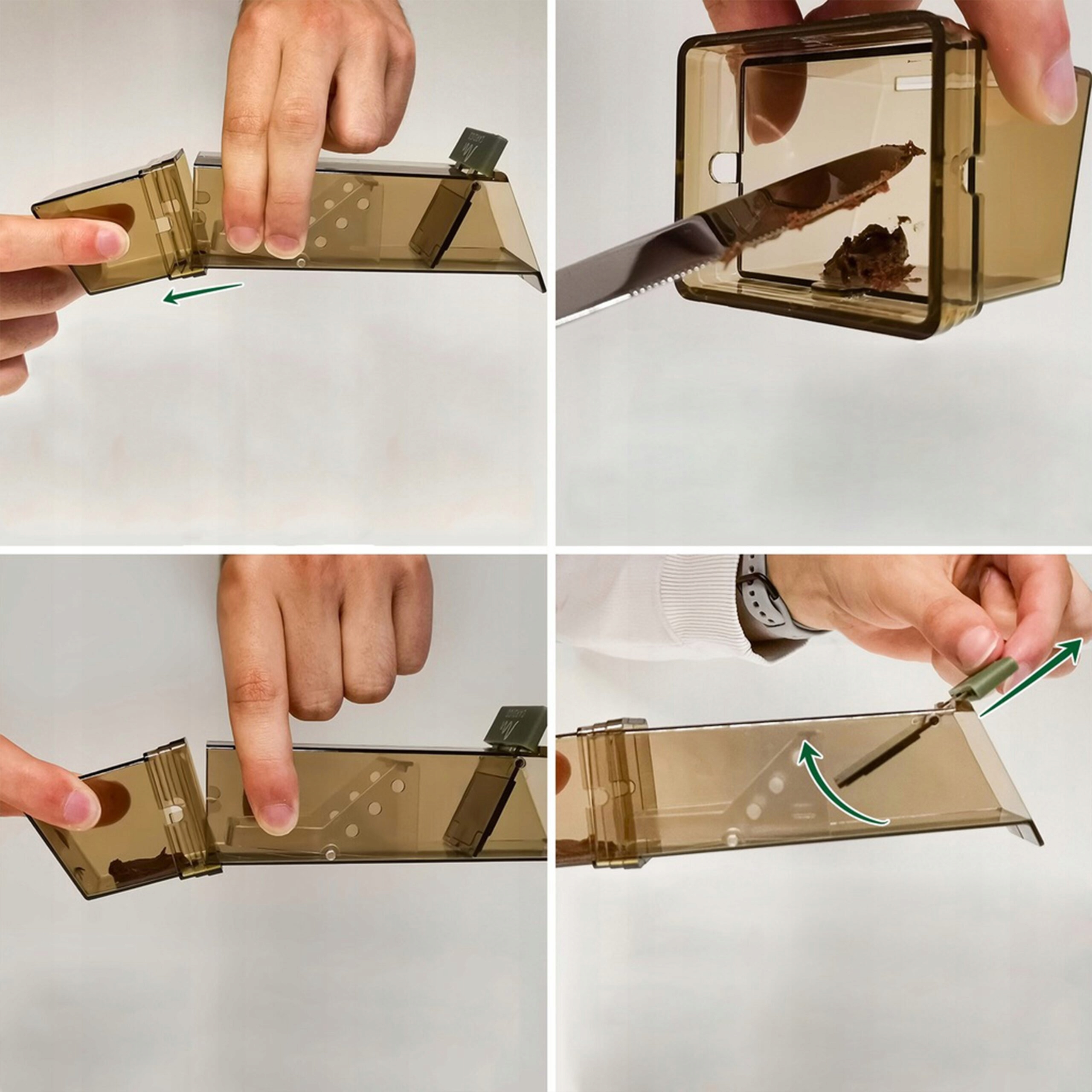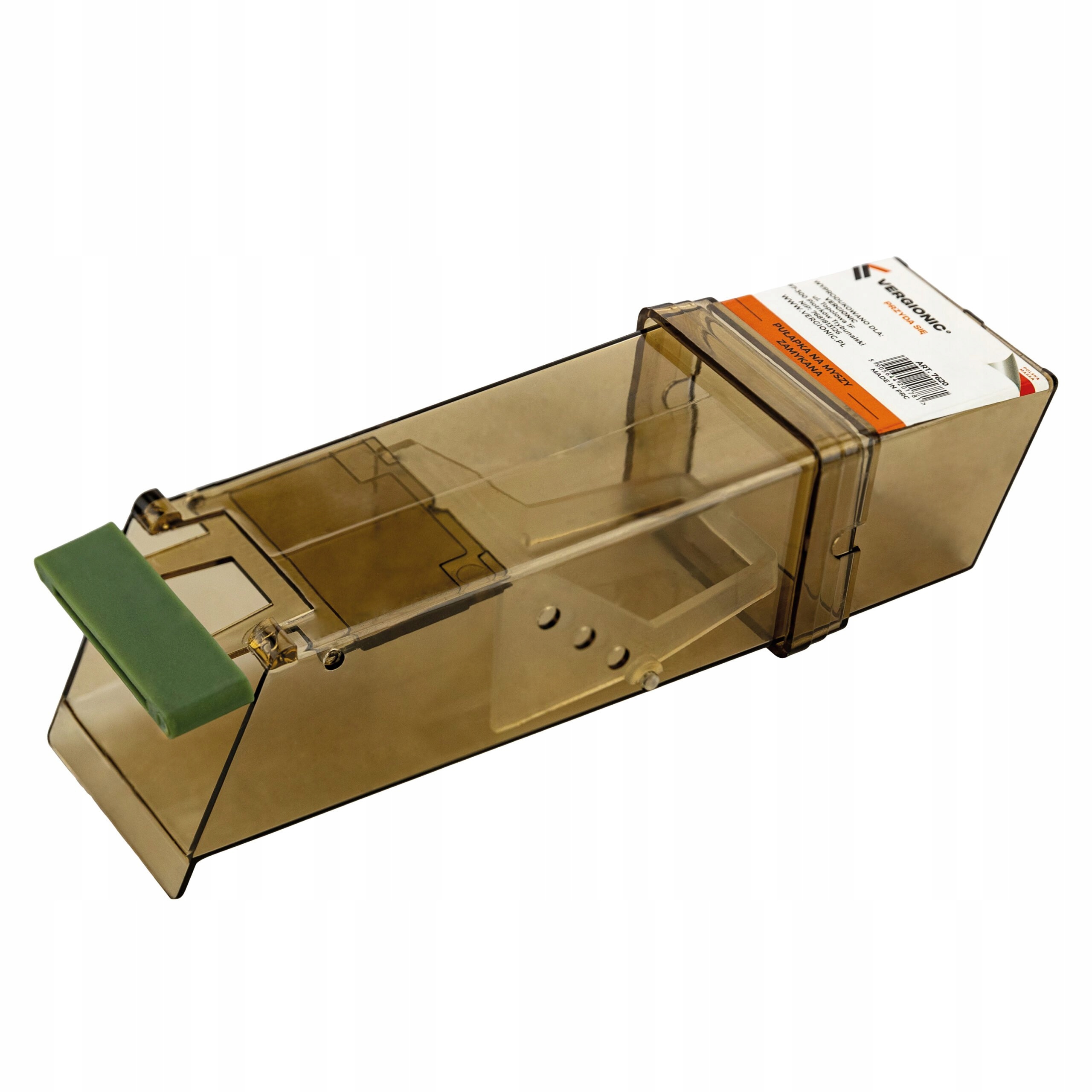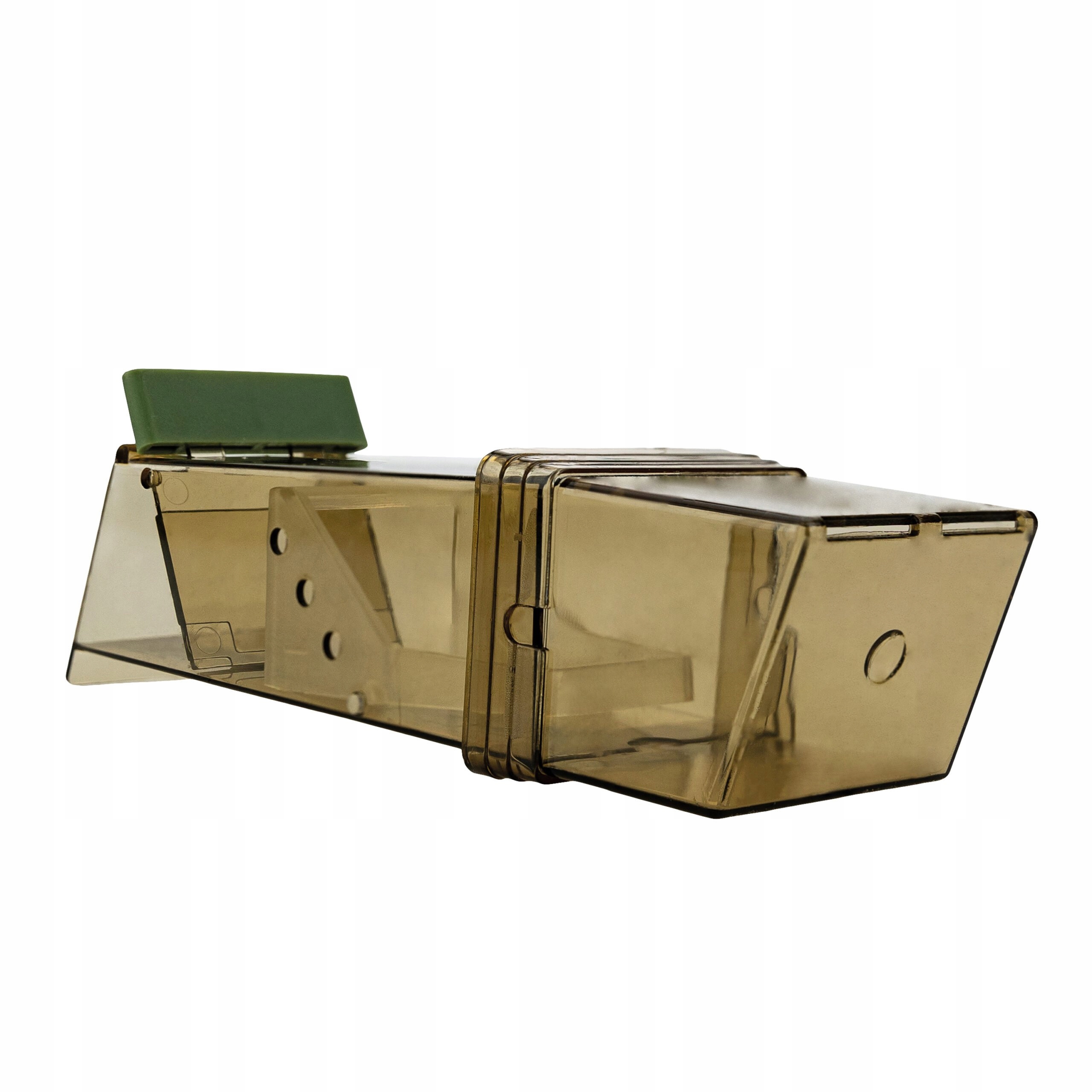 Pułapka posiada specjalny mechanizm, który wpuszcza mysz do środka i nie wypuszcza jej na zewnątrz.
