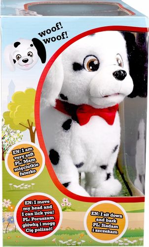 Interaktywny piesek Dalmatyńczyk Pepper to idealna zabawka dla dzieci, które marzą o własnym zwierzaku. Wyposażony w czujniki dotykowe umieszczone na głowie, z tyłu i w uchu, Pepper reaguje na dotyk, dzięki czemu zabawa staje się interaktywna i realistyczna. Piesek potrafi chodzić, machać ogonem, podawać łapę i siadać, a także porusza głową, imitując lizanie. Dodatkowo wydaje realistyczne odgłosy, takie jak szczekanie, wąchanie i piszczenie, co dodaje autentyczności zabawie. Zabawka nie wymaga komend głosowych – wszystkie funkcje aktywowane są poprzez dotyk, co czyni ją idealną dla młodszych dzieci od 2. roku życia. Pepper to świetny towarzysz, który uczy dzieci odpowiedzialności i rozwija ich wyobraźnię, jednocześnie dostarczając mnóstwo radości z interaktywnej zabawy. Maskotka jest zasilana na 3 baterie AA (brak w zestawie) i wykonana z miękkiej tkaniny, co czyni ją przyjemną w dotyku.