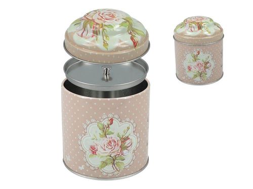 Niewielka puszka z uroczą, kwiatową dekoracją.