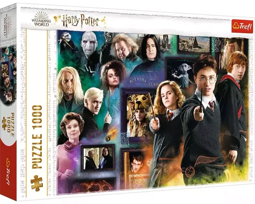 Puzzle składające się z 1000 elementów przedstawiają bohaterów najbardziej znanego filmu o świecie magii – „Harry'ego Pottera”. Wymiar obrazka po ułożeniu: 68.3 x 48.0 cm.