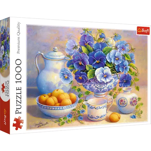 Puzzle 1000 elementów z martwą naturą po ułożeniu mają wymiar 68.0 x 48.0 cm. Puzzle cechuje wysoka jakość i głębokie nasycenie kolorów. Papier kalandrowany odbijający światło, pokryty jest ekologicznymi farbami spożywczymi.