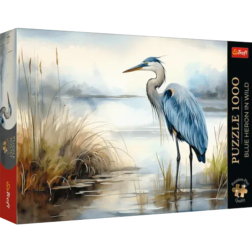 Puzzle składają się z 1000 elementów. Przedstawiają majestatycznego błękitnego czapla w jego naturalnym środowisku. Realistyczna, pełna detali ilustracja ukazuje piękno dzikiej przyrody i spokój wodnego krajobrazu. Produkt wykonano w Polsce, przy użyciu wysokogatunkowych, ekologicznych materiałów. Specjalny kalandrowany papier odbija światło, co ułatwia układanie. Wymiary obrazka po ułożeniu: 68.3 x 48.0 cm