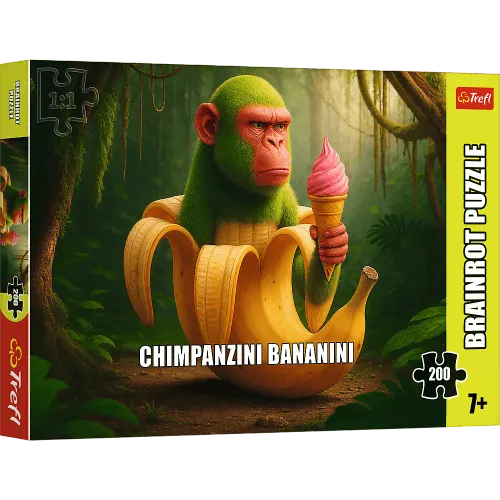 „Chimpanzini Bananini” to puzzle składające się z 200 elementów, które zachwycą małych miłośników „BrainRots”. Wysoką jakość, nasycenie kolorów i bezpieczeństwo układania zapewnia kalandrowany papier odbijający światło i wykorzystanie materiałów ekologicznych. Wymiary obrazka po ułożeniu: 48.0 x 34.0 cm