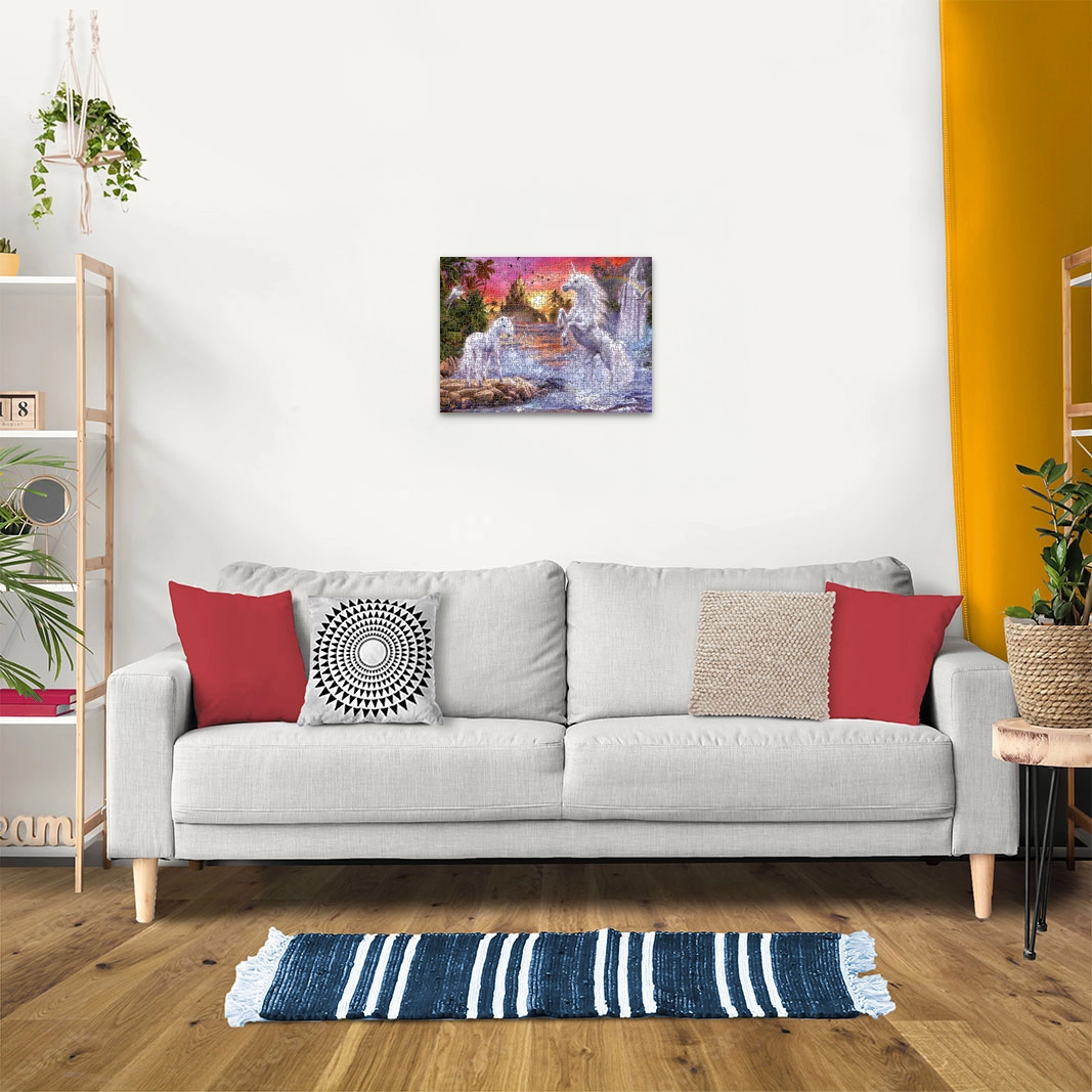 Puzzle po ułożeniu obrazka... świecą wciemności! Ravensburger jest największym producentem puzzli na świecie, które wytwarza od ponad 130 lat. • Puzzle marki Ravensburger posiadają antyrefleksyjną powłokę - są wykonane z opatentowanego, grubego kartonu z miękką podściółką (obrazek nadrukowany jest na papierze o strukturze włókna lnu, które ogranicza odbijanie światła, ułatwia układanie, a sam obrazek, niezależnie od wielkości puzzli, jest wyraźniejszy). • Ponadto dzięki opatentowanej technologii SoftClick każdy pojedynczy element puzzli Ravensburger ma unikalny kształt i pasuje wyłącznie w jedno miejsce. • Kształty puzzli są różnorodne dzięki ręcznie wykonanej sztancy. • Puzzle Ravensburger są odporne na zginanie.