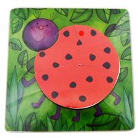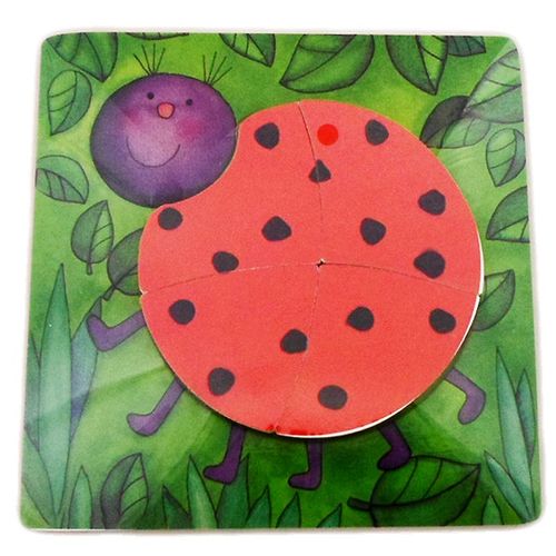 4 elementowe, drewniane puzzle z obrazkiem biedronki.