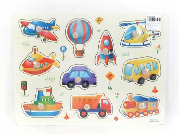 Drewniane puzzle Bigtoys z motywem pojazdów to edukacyjna zabawka dla najmłodszych. Zestaw zawiera 10 kolorowych elementów z wygodnymi uchwytami, które ułatwiają dzieciom układanie i chwytanie puzzli.