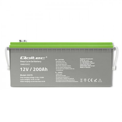 Akumulator żelowy Deep Cycle firmy Qoltec o pojemności 200Ah oraz napięciu 12V to niezbędny element w szerokiej gamie zastosowań. Dzięki swojej specyfikacji technicznej, produkt ten doskonale sprawdzi się w systemach solarnych, łodziach czy w domowych instalacjach awaryjnych. Długotrwała żywotność oraz możliwość cyklicznego ładowania sprawiają, że akumulator ten cechuje się niezawodnością i stabilnością. Pomimo swojej wysokiej wydajności, produkt jest stosunkowo lekki - waży zaledwie 62.5kg, co ułatwia jego transport i instalację. Gwarantuje to wygodę użytkowania oraz możliwość przenoszenia między różnymi miejscami pracy. Qoltec Akumulator żelowy Deep Cycle to doskonałe rozwiązanie dla osób poszukujących solidnego i trwałego źródła zasilania.