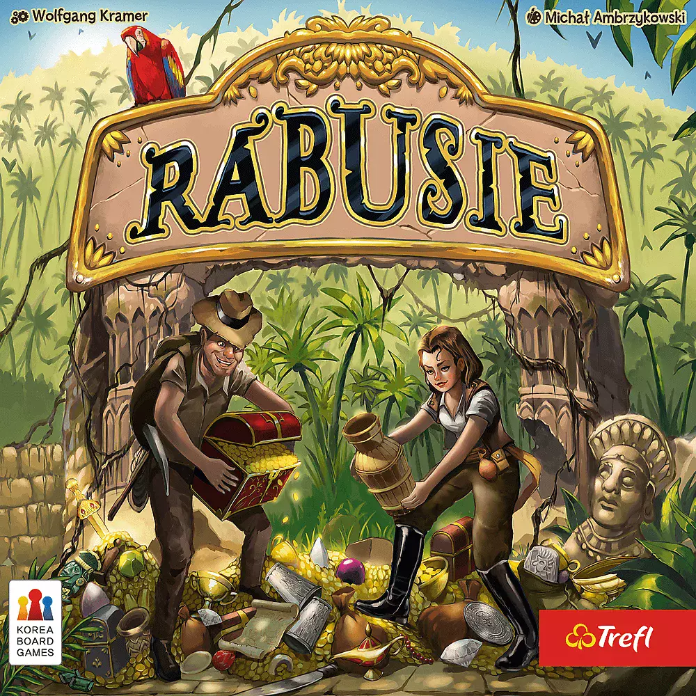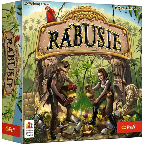 „Rabusie” to gra rodzinna stworzona z myślą o miłośnikach karcianek Ruiny starożytnego miasta w dżungli kryją liczne skarby, które właśnie padły Waszym łupem. Czas je podzielić! Nie mogąc się dogadać, sięgacie po stary, sprawdzony sposób – grę w karty. Zagrywajcie odpowiednie karty, aby utrzymać zgromadzone dotychczas skarby, podebrać łupy przeciwnikom lub przejąć te kosztowności, na które jeszcze nikt się nie pokusił! Kto zakończy rozgrywkę, gromadząc w swych sakwach najwięcej skarbów? Zawartość opakowania: • 80 kart skarbów, • 6 planszetek rabusiów, • instrukcja.